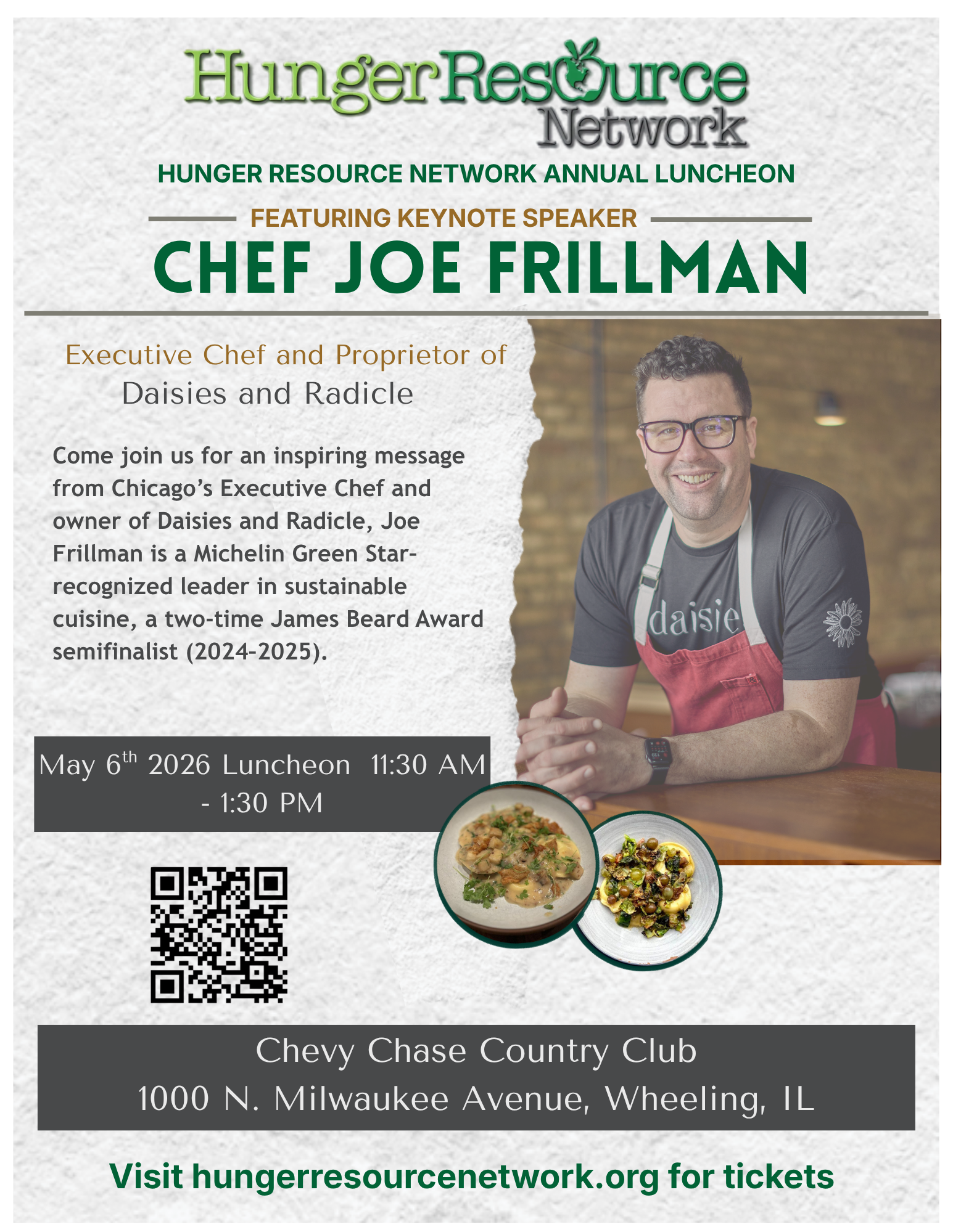 The Hunger Resource Network's mission is to aid in the alleviation of hunger by helping meet the needs of food pantries, soup kitchens, and shelters across Chicagoland. We are a 501(c)(3) certified non-profit organization.