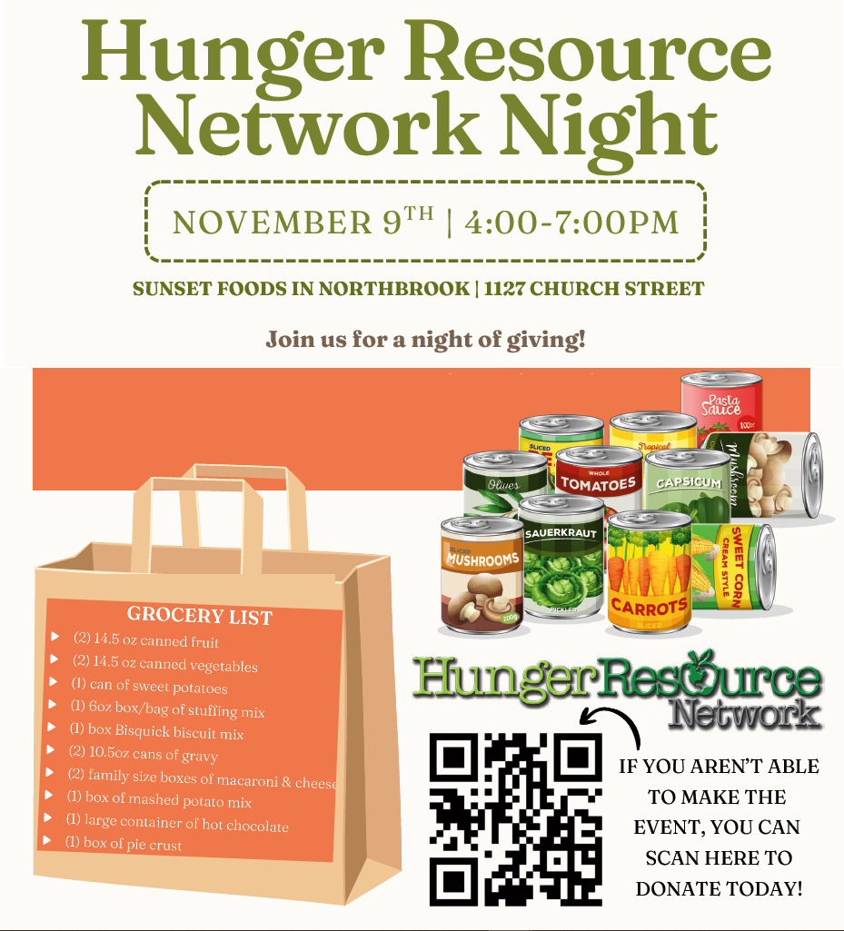 The Hunger Resource Network's mission is to aid in the alleviation of hunger by helping meet the needs of food pantries, soup kitchens, and shelters across Chicagoland. We are a 501(c)(3) certified non-profit organization.